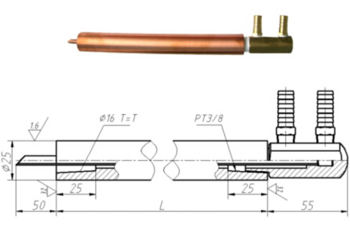 A hegesztőgép egy elektród tartó rúdot használ, amely kettős célokat szolgál: az elektród rögzítését a helyén, és megkönnyíti az áram, a nyomás, valamint a hűtővizet az elektródba. A helyszíni hegesztési műveletek során a markolaton belüli integrált hűtővíz -csatorna hatékonyan lehűti mind az elektródot, mind a fejét. A rúd olyan anyagokból készíthető, mint a króm cirkónium réz vagy a piros réz, biztosítva az optimális teljesítményt.
